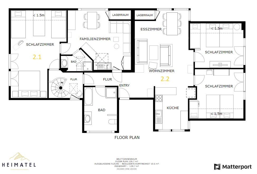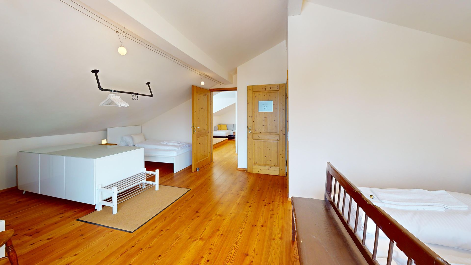 Dieses komfortable Apartment bietet Platz für bis zu vier Personen und ist damit für Familien oder kleine Gruppen geeignet. Im gemeinsamen Schlafzimmer findest Du ein gemütliches Doppelbett sowie zwei Einzelbetten. Zusätzlich verfügt das Apartment über ein Wohnzimmer mit einem herrlichen Blick auf die umliegenden Berge, wo Du Dich nach einem ereignisreichen Tag entspannen und die Aussicht genießen kannst.