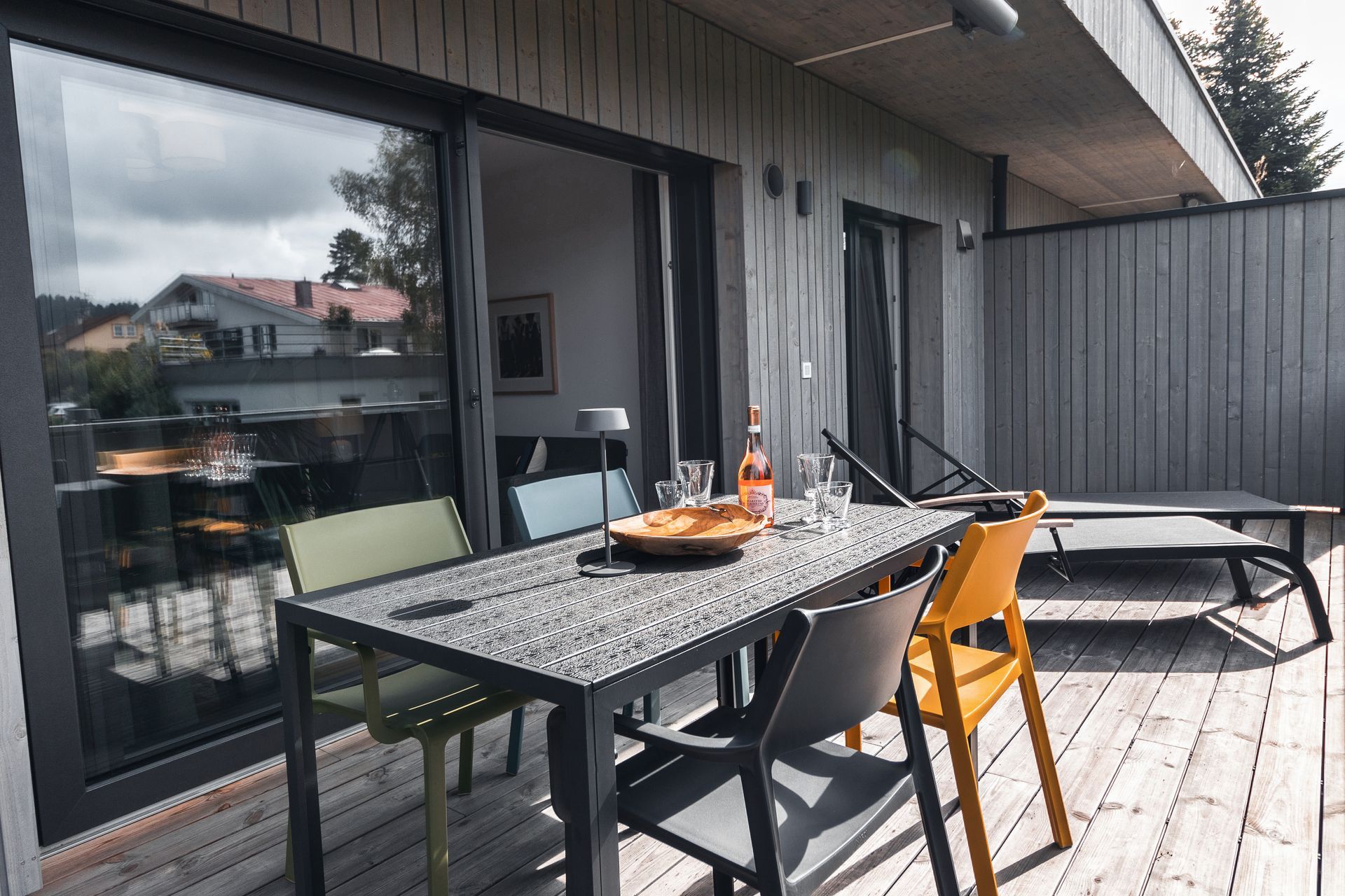 - Einen weitläufigen Balkon, perfekt für entspannte Stunden