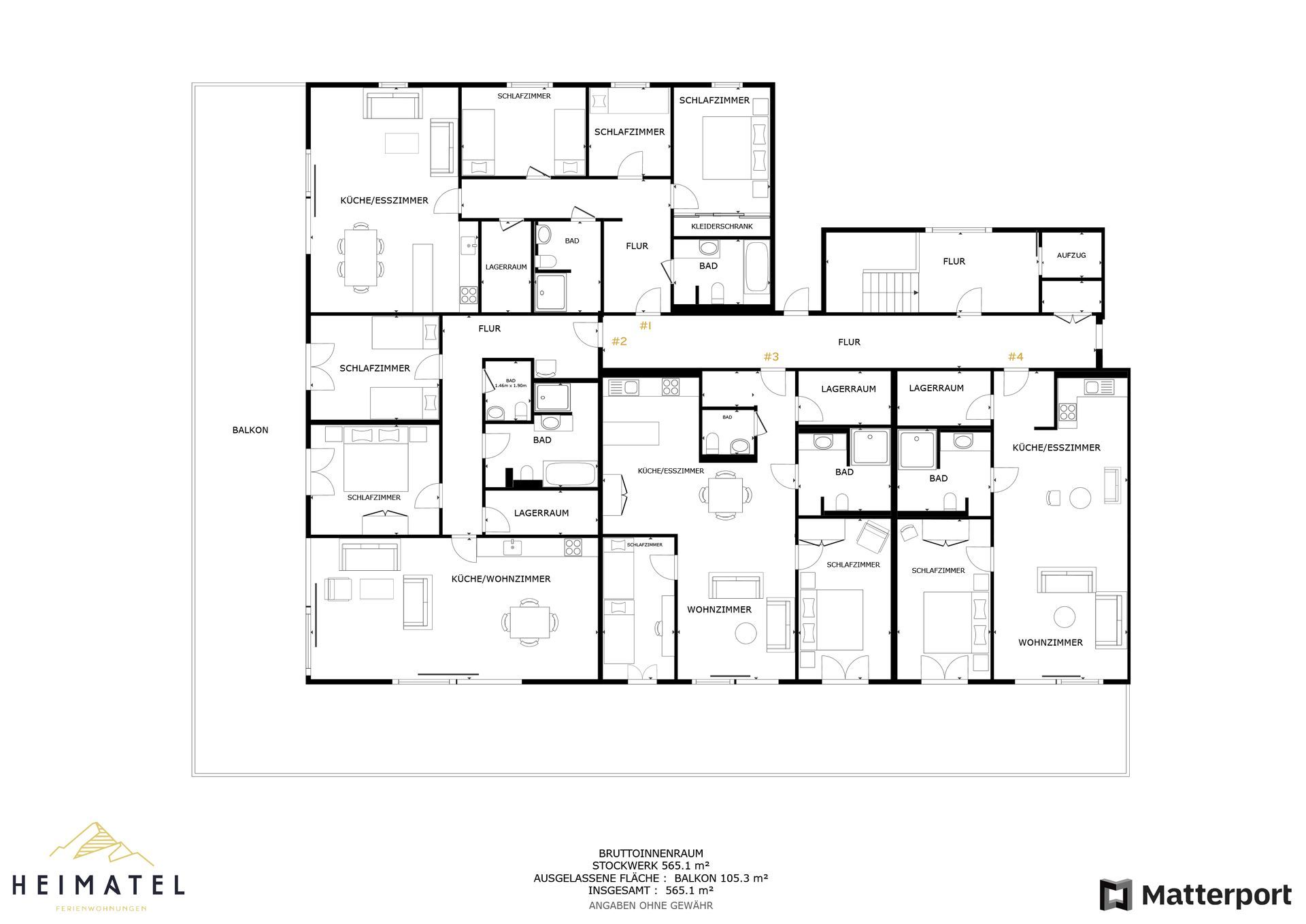 - 4 separate Wohnungen mit viel Privatsphäre und 9 Schlafzimmer mit luxuriösen Boxspringbetten