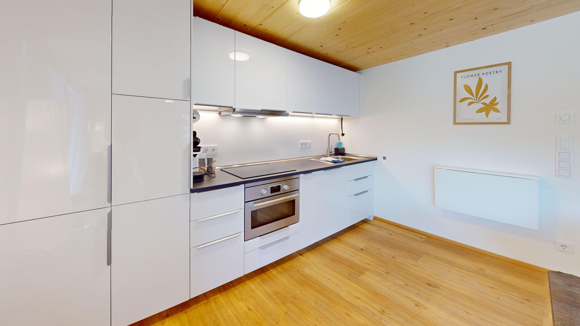 Das großzügige Wohnzimmer lädt mit einem großen Esstisch und einem bequemen Sofa zu entspannten Abenden ein. Für beste Unterhaltung sorgt ein beeindruckender 65-Zoll-Fernseher. Die voll ausgestattete Küche lässt keine Wünsche offen und bietet dir alle notwendigen Geräte und Utensilien, um köstliche Mahlzeiten zuzubereiten.