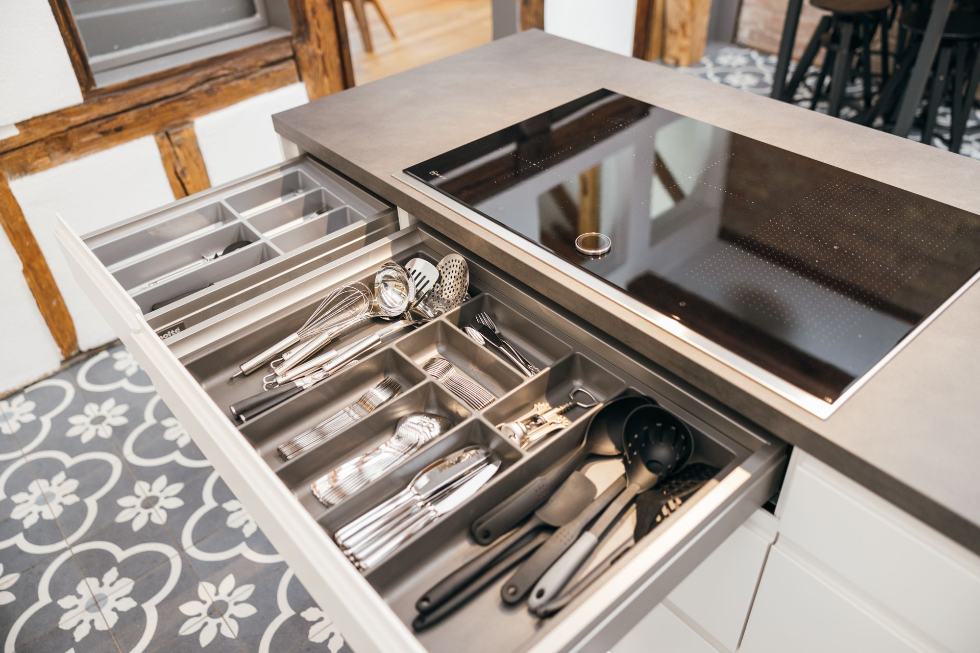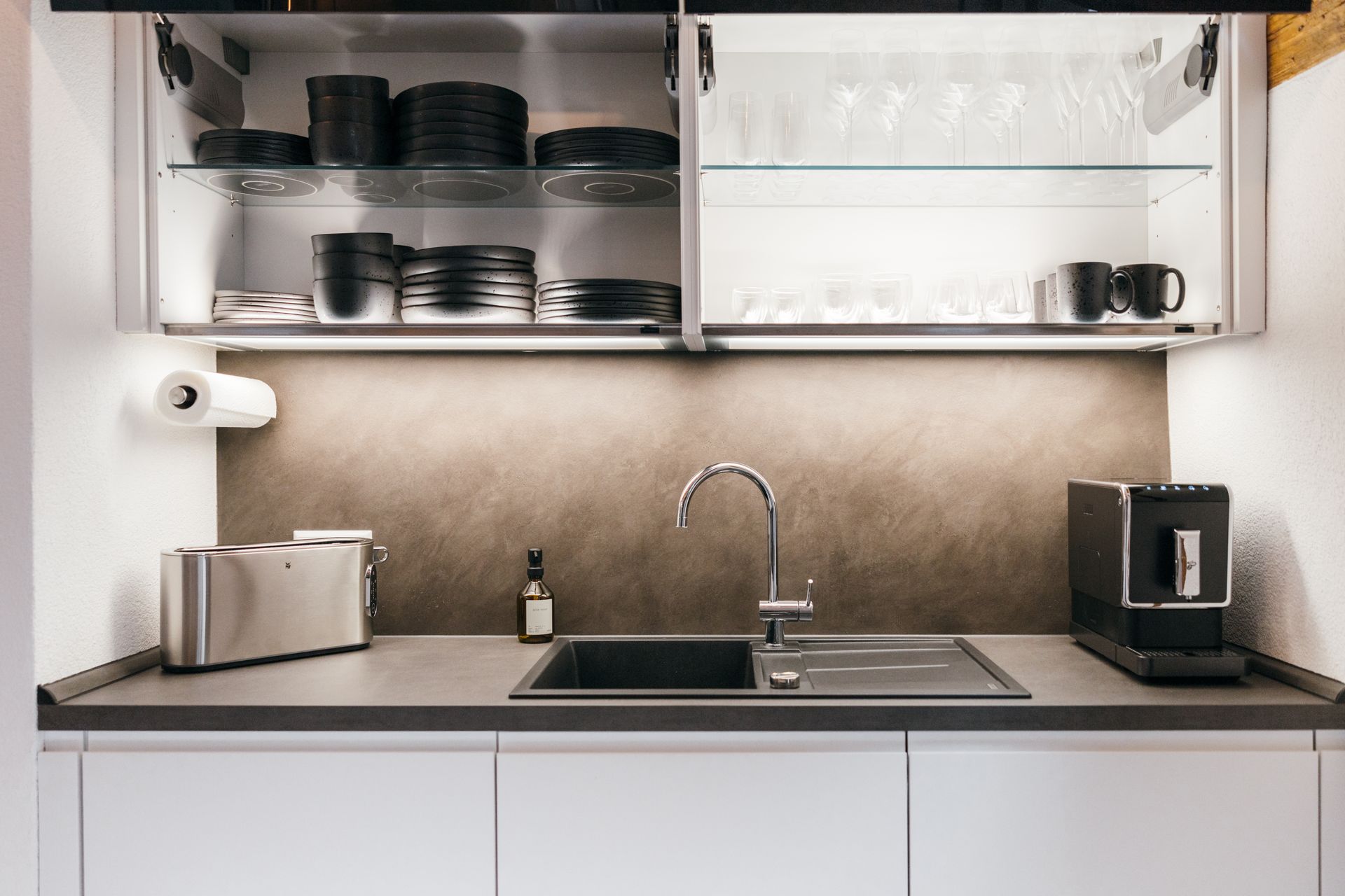 Kühlschrank, Gefrierschrank, Weinschrank, Induktionskochfeld, Backofen, Spülmaschine, Waschmaschine, Kaffeevollautomat, Toaster, Wasserkocher, Geschirr, Besteck, Gläser...