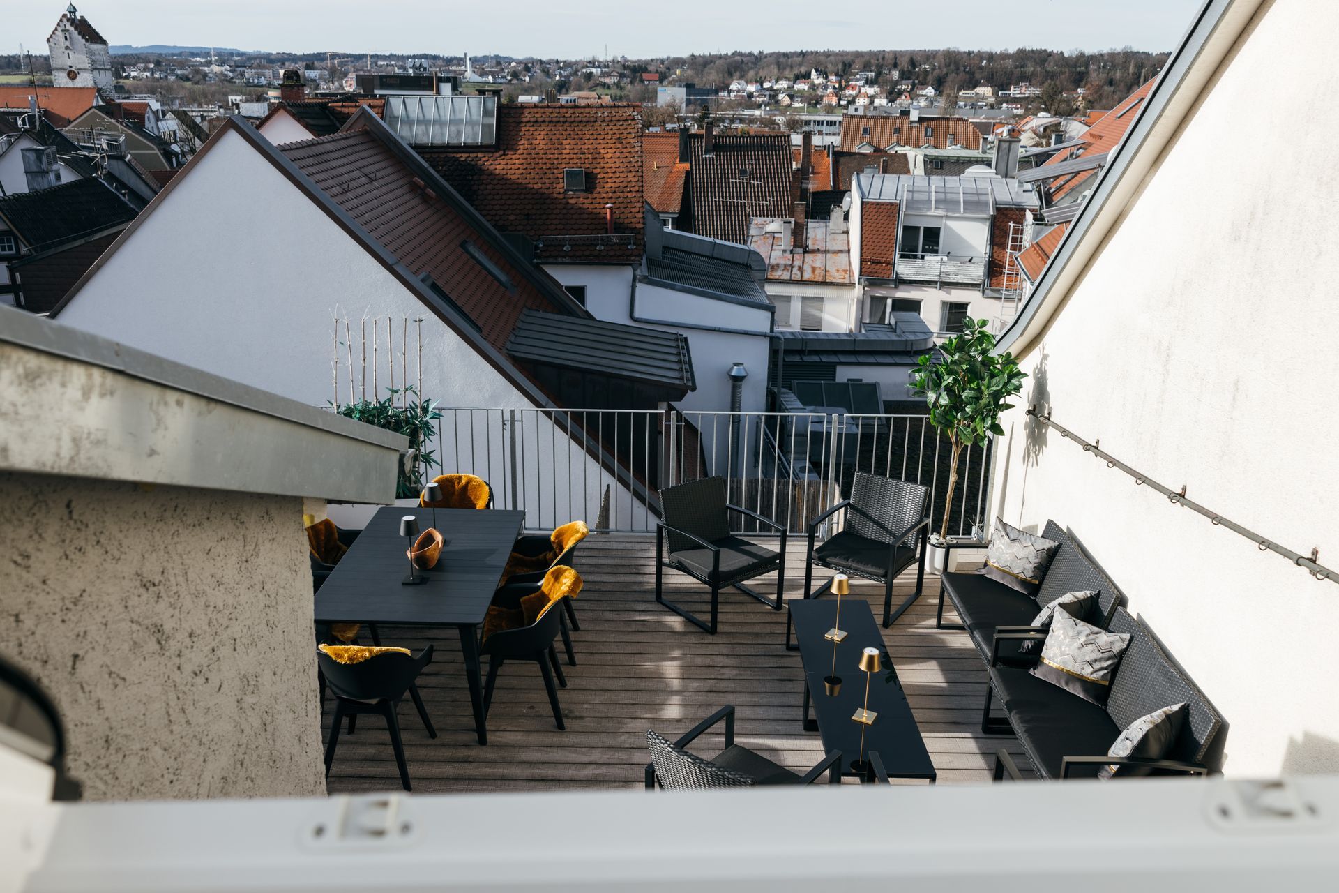 Buche jetzt unsere luxuriöse Ferienwohnung in Ravensburg und genieße den Komfort einer erstklassigen Unterkunft mit zwei Dachterrassen und einer Sauna auf der Terrasse.