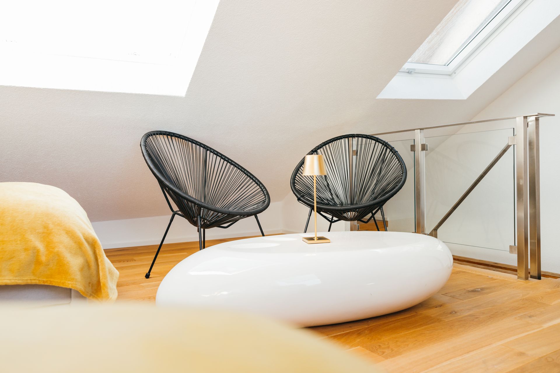 2x Einzelbett (90x200), Loungetisch und Sessel