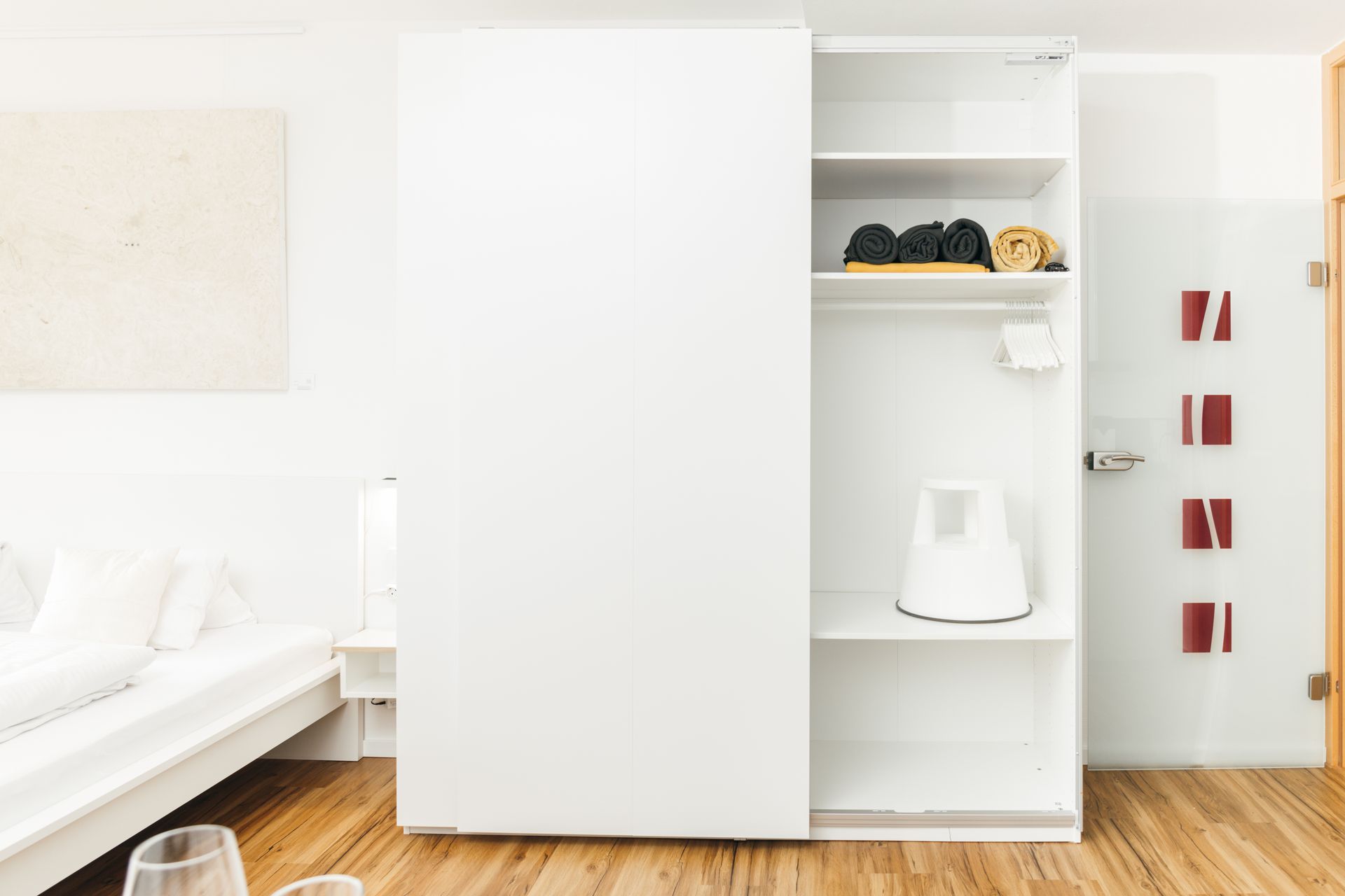 ⚙️ Geräte: Kühlschrank, Tiefkühler, Herd, Mikrowelle, Pad-Kaffeemaschine (Filteraufsatz), Wasserkocher, Toaster, Föhn, Wäscheständer