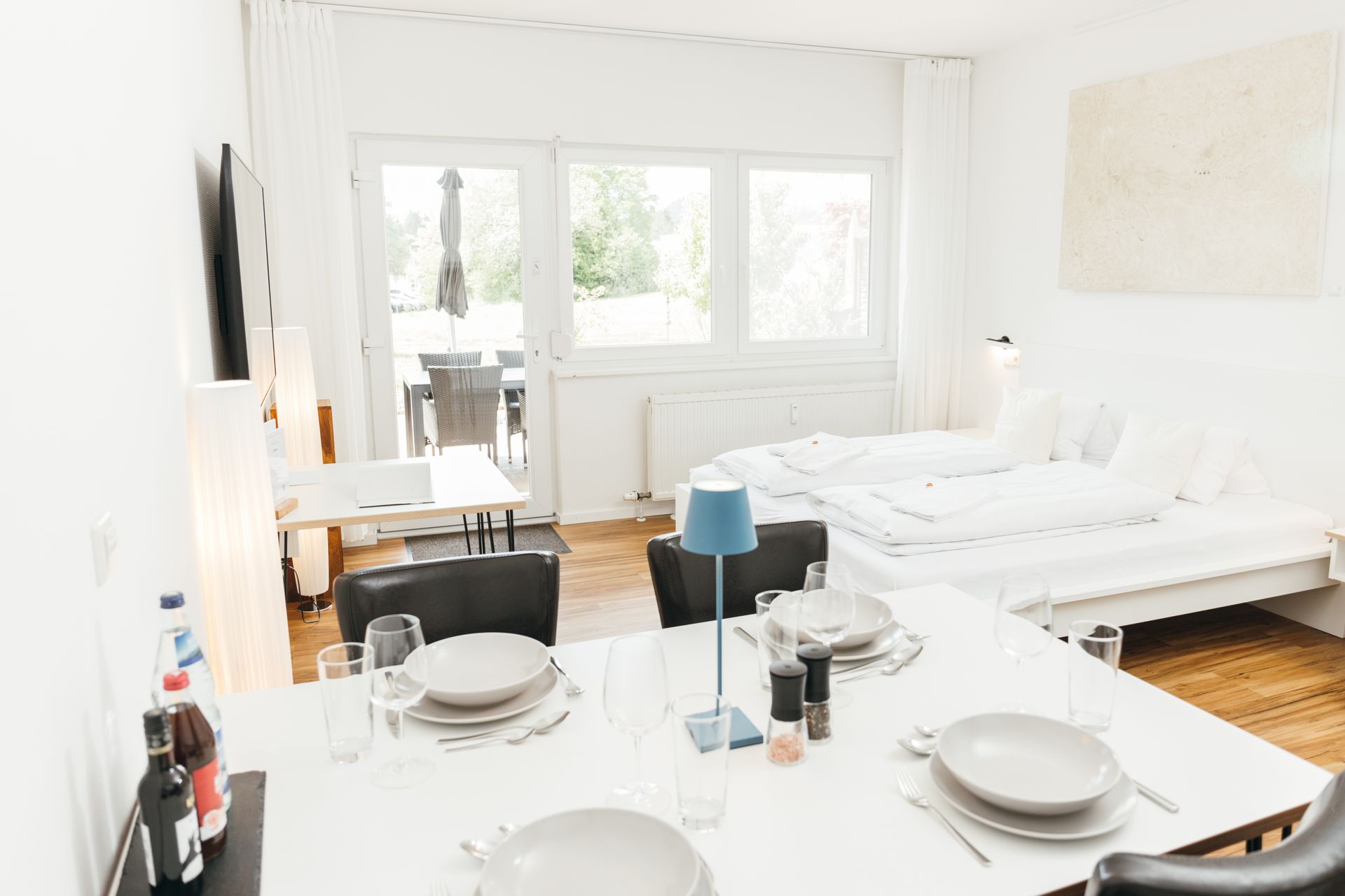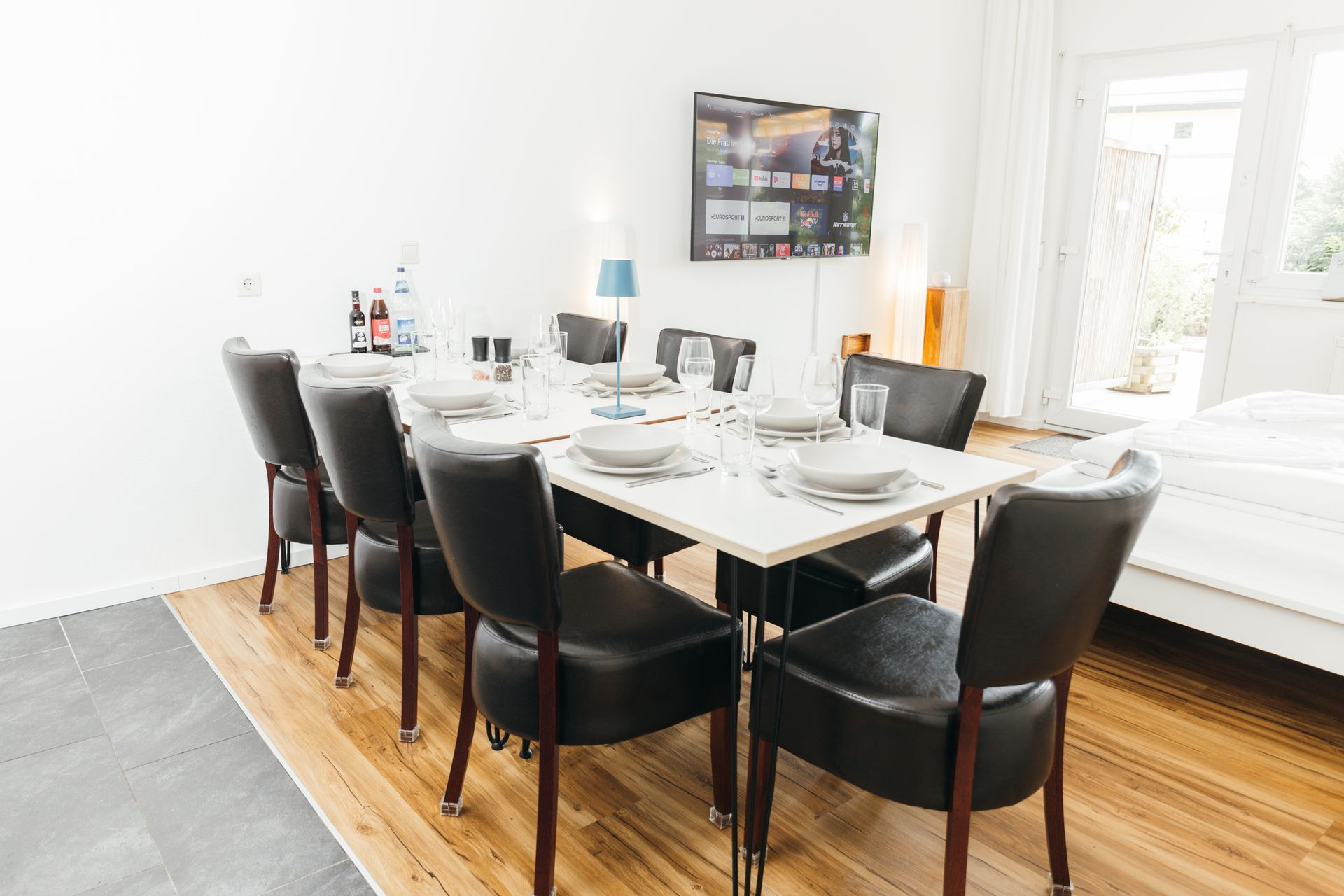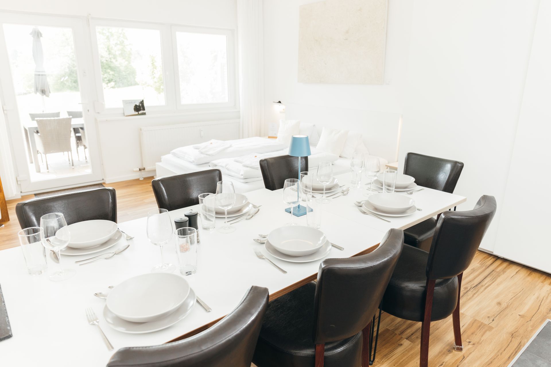 Die Wohnungen 151/3 & 151/4 können zu einer großen Wohnung verbunden werden. In diesem Fall wird der Tisch in 151/3 für bis zu 8 Personen erweitert.