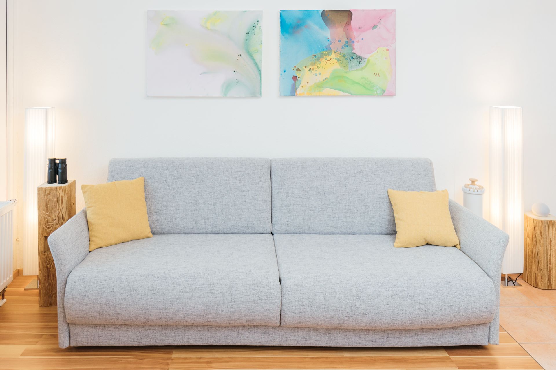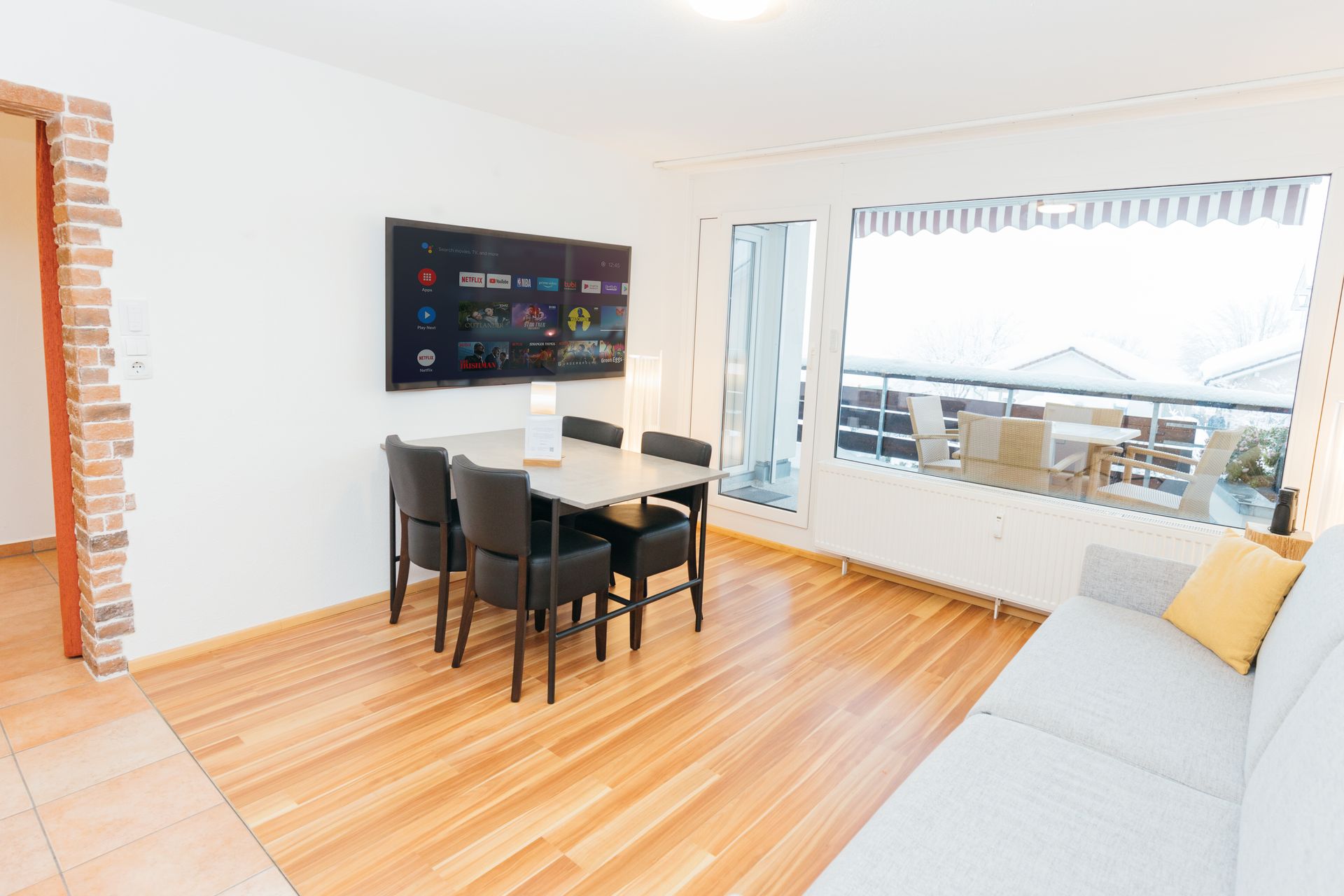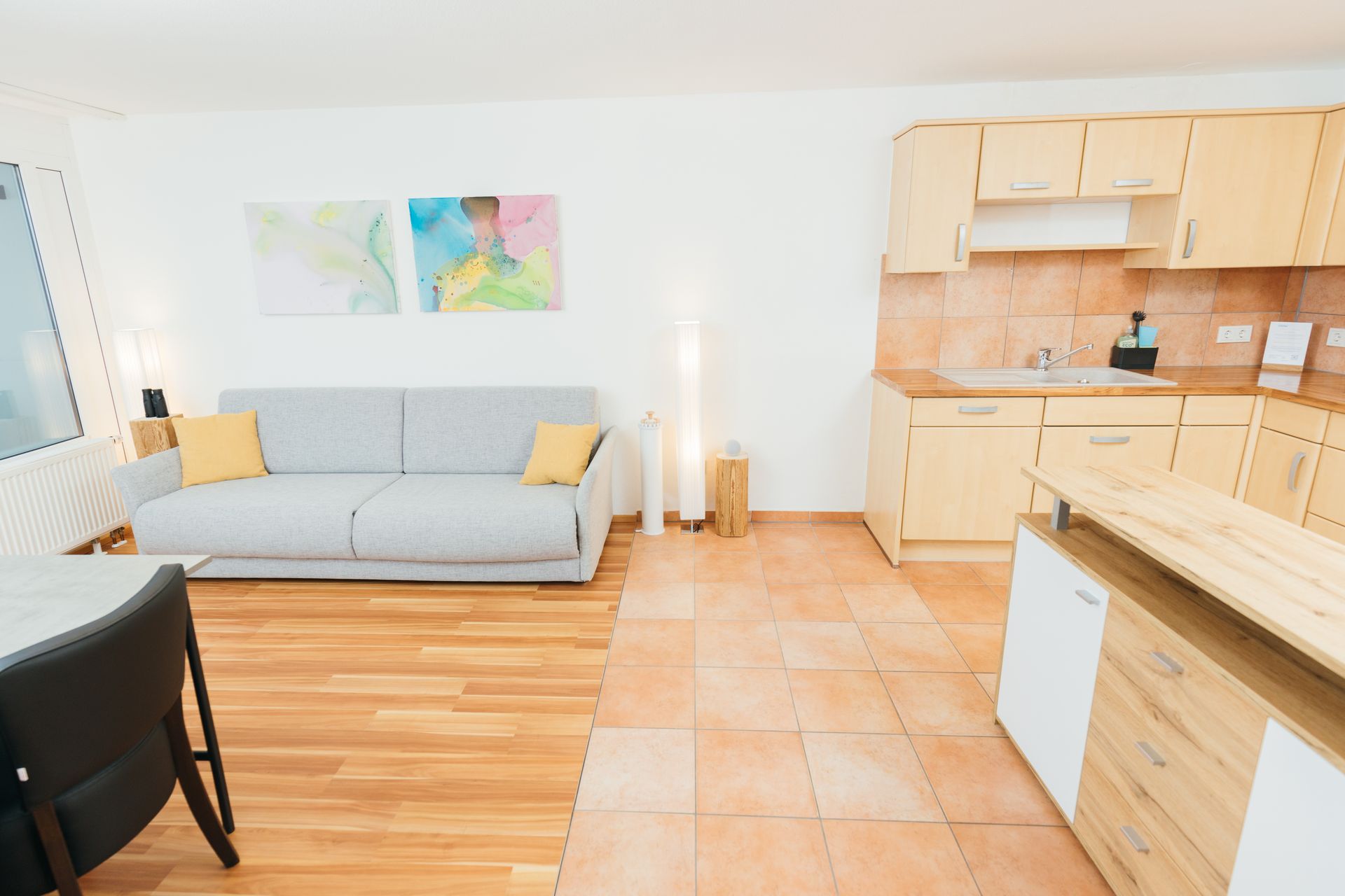 Das Apartment 294 verfügt über ein geräumiges Schlafzimmer mit einem komfortablen Doppelbett. Im Wohnzimmer befindet sich eine bequeme Schlafcouch für zwei weitere Personen (140x200cm). Der Balkon bietet nicht nur einen herrlichen Blick auf die umliegende Landschaft, sondern ist auch ein idealer Ort zum Entspannen und Abschalten.