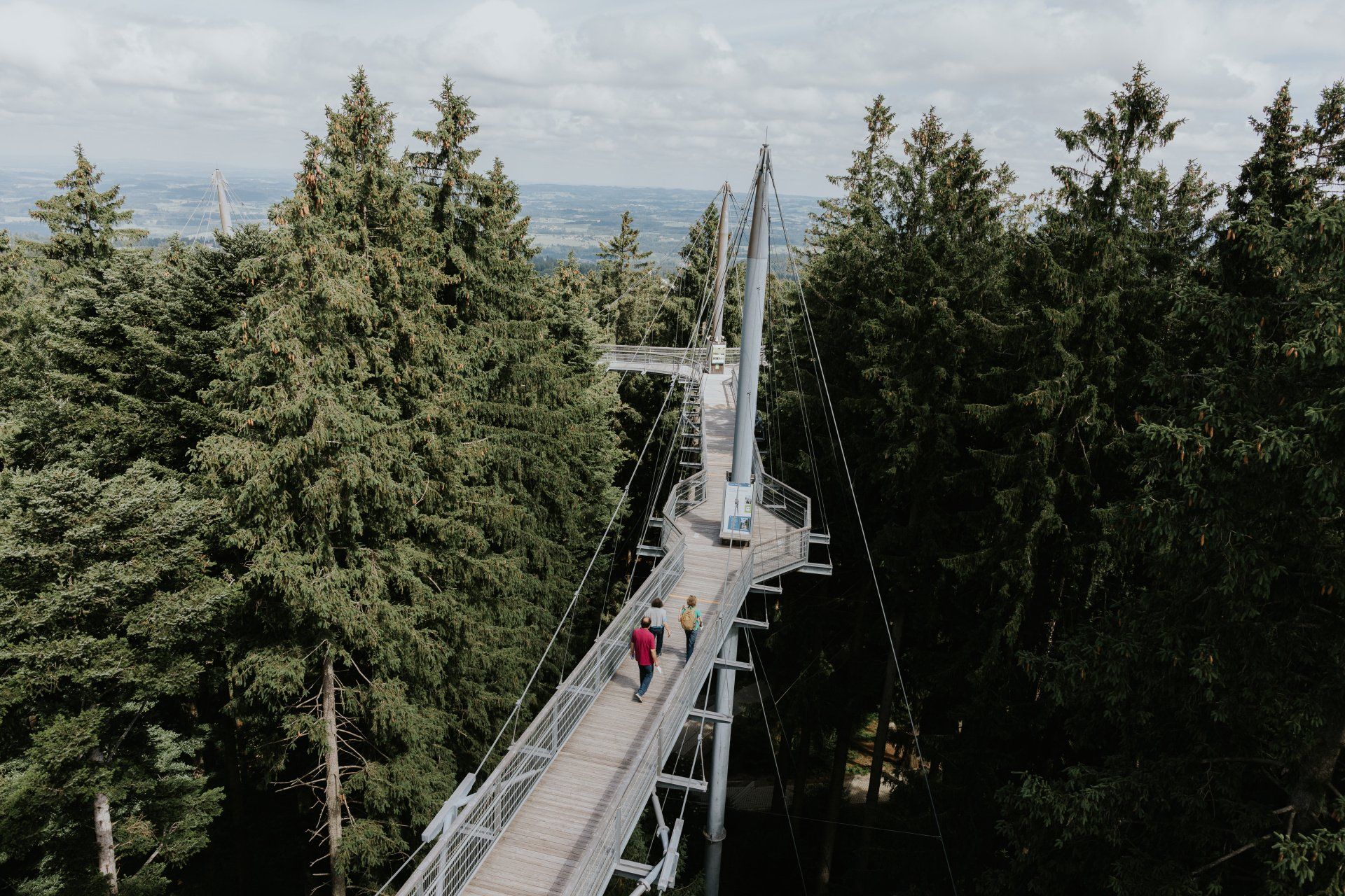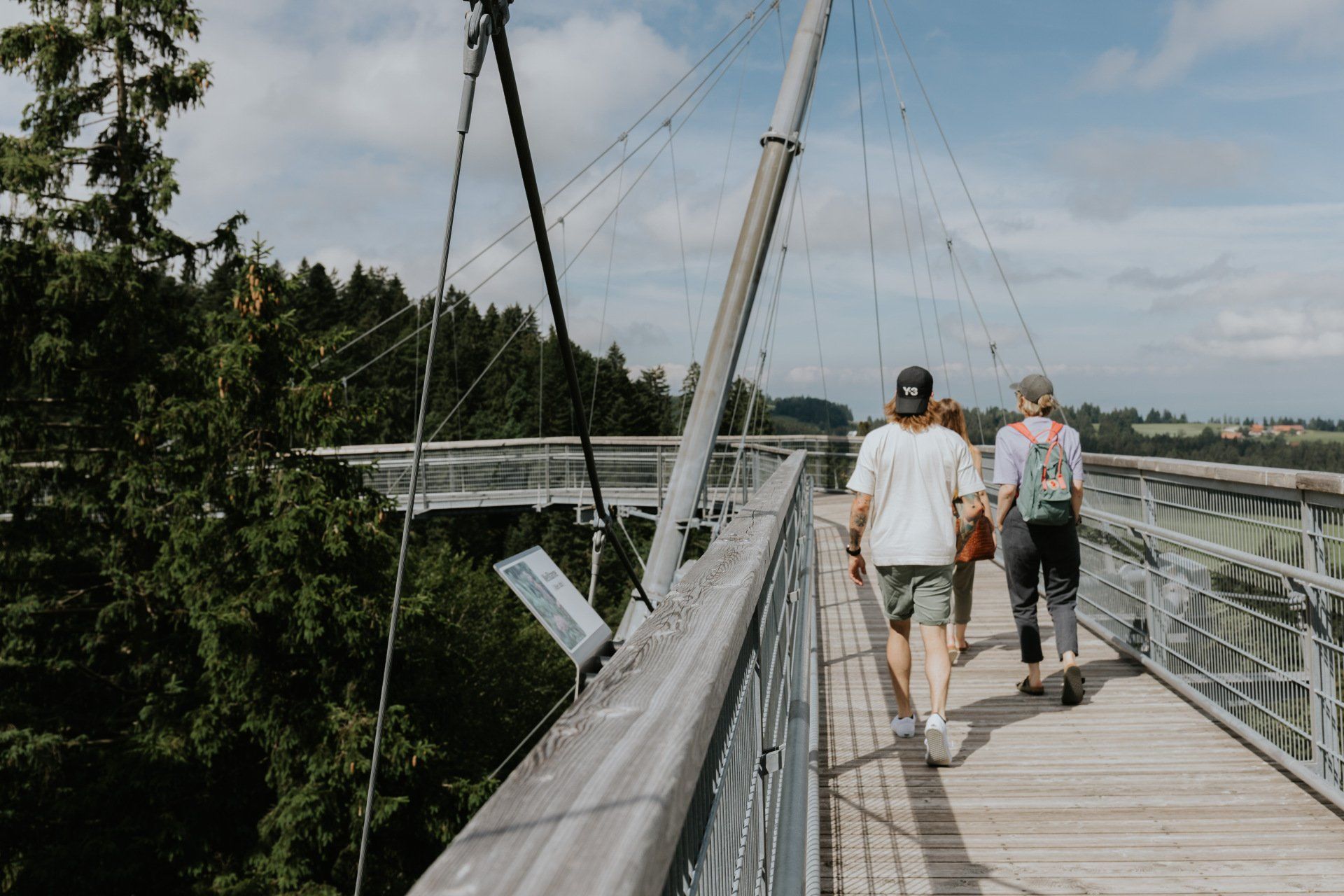 Auf Höhe der Baumkronen flanieren und dabei die Natur aus ganz neuen Perspektiven erleben – das erwartet Sie auf dem modernen, barrierefreien Baumwipfelpfad im Naturerlebnispark Skywalk Allgäu.