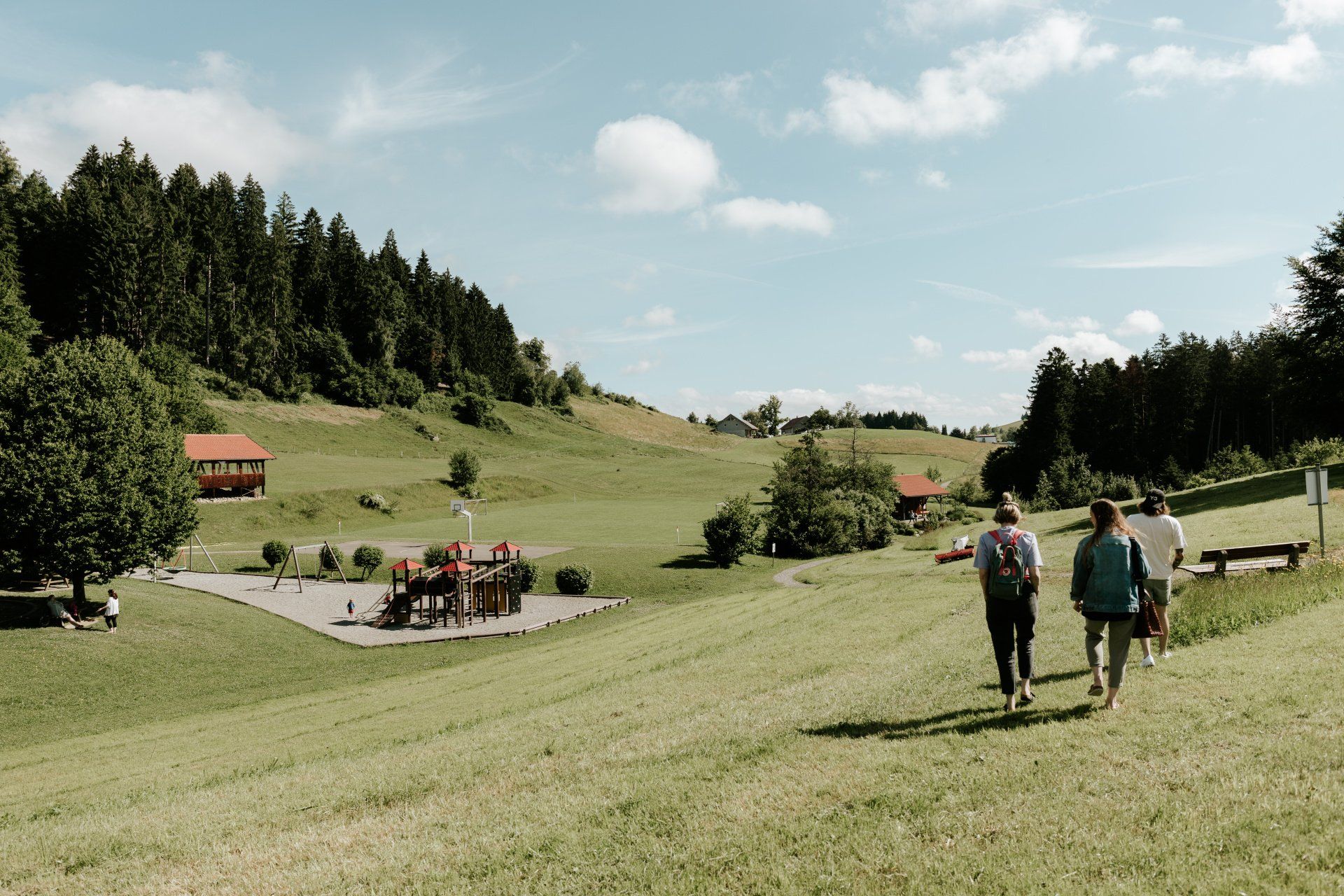Der Weg führt euch zur Galluskapelle, durch den Bienenlehrpfad und entlang duftender Streuobstwiesen – vorbei am Kneipp-Becken, wo ihr euch erfrischen könnt, bevor ihr wieder entspannt zurückkehrt.