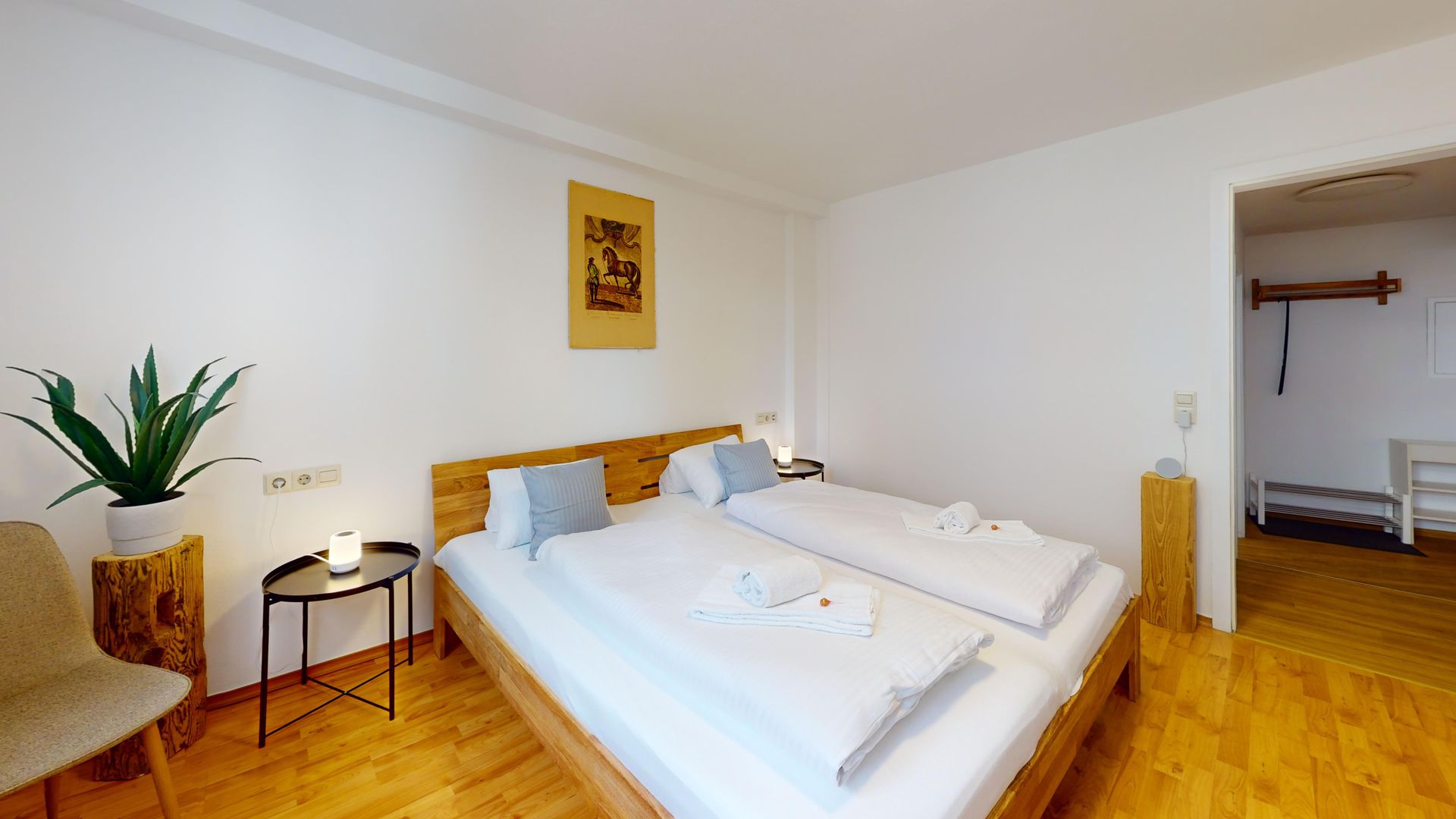 Im Wohnzimmer findest du zwei weitere 90 cm breite Zustellbetten, sodass unsere Wohnung bis zu 6 Gäste bequem unterbringen kann.